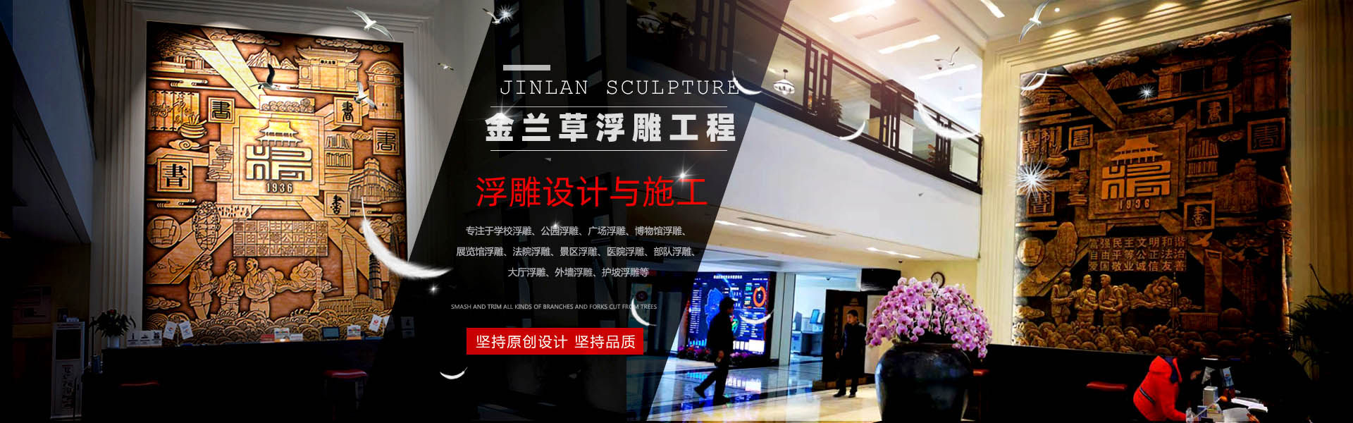 金蘭草浮雕是一家專業的玻璃鋼浮雕、鍛銅浮雕、鑄銅浮雕、不銹鋼浮雕、砂巖浮雕、石材浮雕、鐵藝浮雕、水泥浮雕等設計與施工的雕塑藝術企業,專注于學校浮雕、公園浮雕、廣場浮雕、博物館浮雕、展覽館浮雕、法院浮雕、景區浮雕、醫院浮雕、部隊浮雕、大廳浮雕、外墻浮雕、護坡浮雕等,服務社會,為廣大業主朋友們設計制作出精品浮雕。企業自成立以來,一直致力于高水準浮雕的設計與施工,真心的服務,力求讓每一位客戶滿意。多年來,公司服務全國,業績遍布各地,得到眾多客戶的肯定。 公司秉承對客戶負責的原則,堅持原創設計,堅持品質,堅持每一件浮雕作品不僅僅要打動客戶,更要打動自己。讓客戶放心,對自己負責,是公司始終堅持的方針。 展望未來,金蘭浮雕將以更加開放的胸懷迎接發展中的挑戰和機遇,“開拓創新,合作共贏,追求卓越”,與社會各界朋友一起攜手共創輝煌! 公司自成立以來,一直致力于高水準浮雕、雕塑、景觀設計與施工,真心的服務,力求讓每一位客戶滿意。多年來,公司服務全國,業績遍布各地,得到眾多客戶的肯定。 公司秉承對客戶負責的原則,堅持原創設計,堅持品質,堅持每一件雕塑作品不僅僅要打動客戶,更要打動自己。讓客戶放心,對自己負責,是公司始終堅持的方針。 展望未來,金蘭園林景觀將以更加開放的 ...